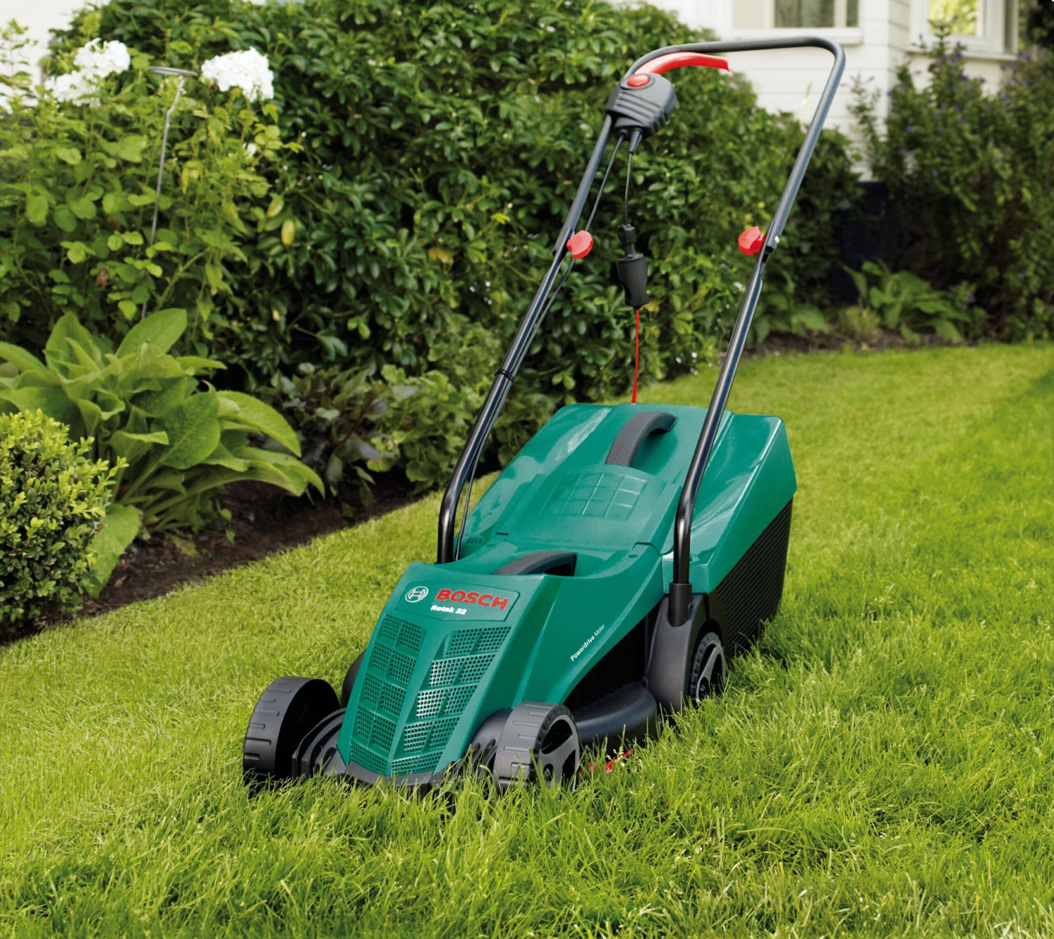 The Bosch ROTAK32R Electric Lawn Mower features a powerful 1200W motor, 32cm cutting width, and precise rotary action for a clean, even cut β perfect for small to medium-sized lawns.