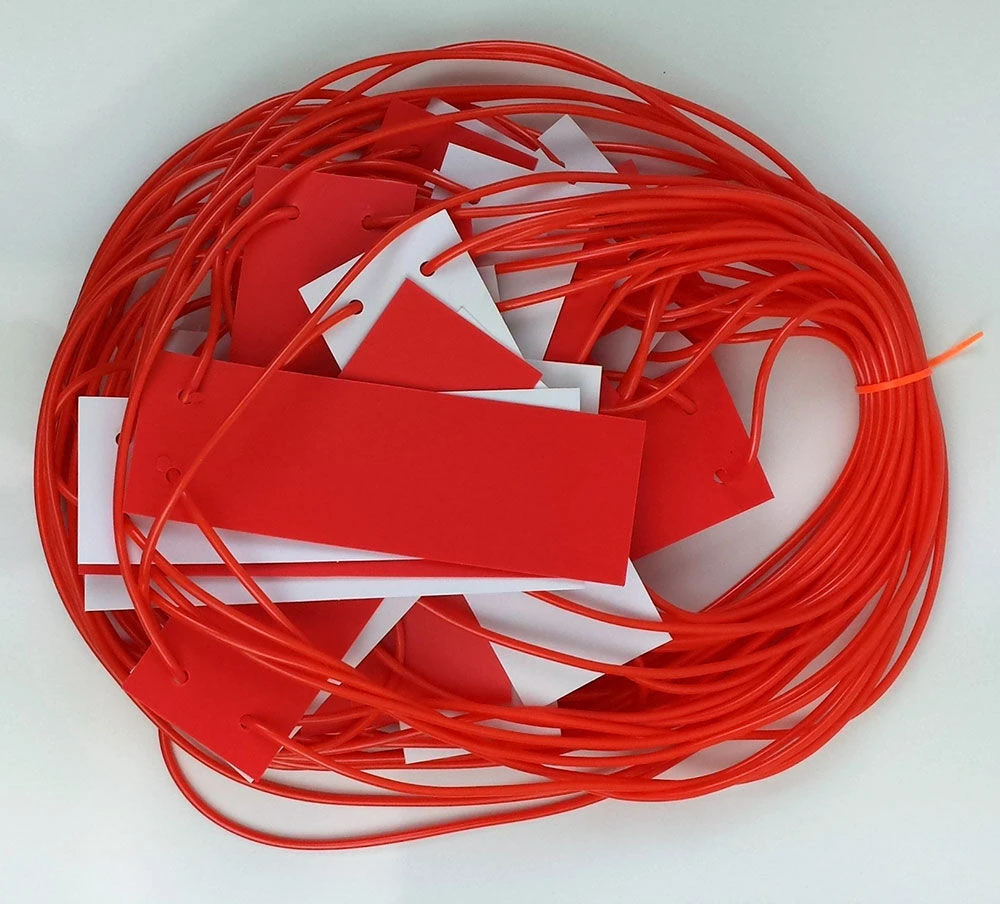 – Manufactured from a bright orange nylon rope with alternate red / white rectangular warning pendants