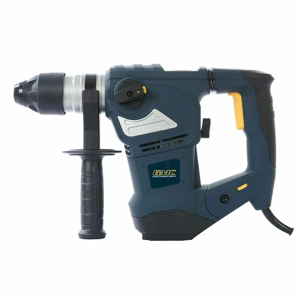 – Includes adjustable handle, dust guard, 3 x masonry drill bits, 2 x chisels, conventional chuck, chuck key, grease pot and durable blow-moulded case.