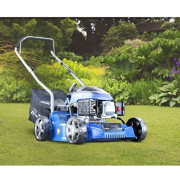 The HYM400P is a low maintenance petrol powered rotary lawnmower from Hyundai. A “no fuss” lawnmower ideally suited for small to medium sized lawns up to approx. 20m x 20m, the HYM400P has a cutting width of 400mm and is powered by a 79cc 4-stroke OHV petrol engine, delivering impressive cutting power, but also low levels of noise and fuel consumption to minimise disruption and keep running costs to a minimum.