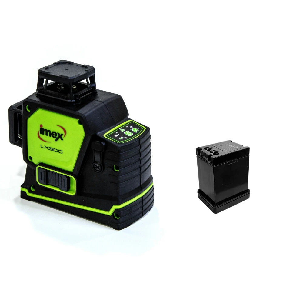 The Imex LX3DG line laser level has 360deg lines with an offset so that all lines are uninterrupted simultaneously the Imex LX3DG in Green beam is the ultimate in interior laser levelling with world first lithium and alkaline batteries all in one kit, accurate lines long range and outdoor mode for use with the line laser detector. The LX3DR also has the longest run time in it’s class and is also a drop test and oven temperature winner. The Imex LX3DG is the ultimate in interior laser levelling.