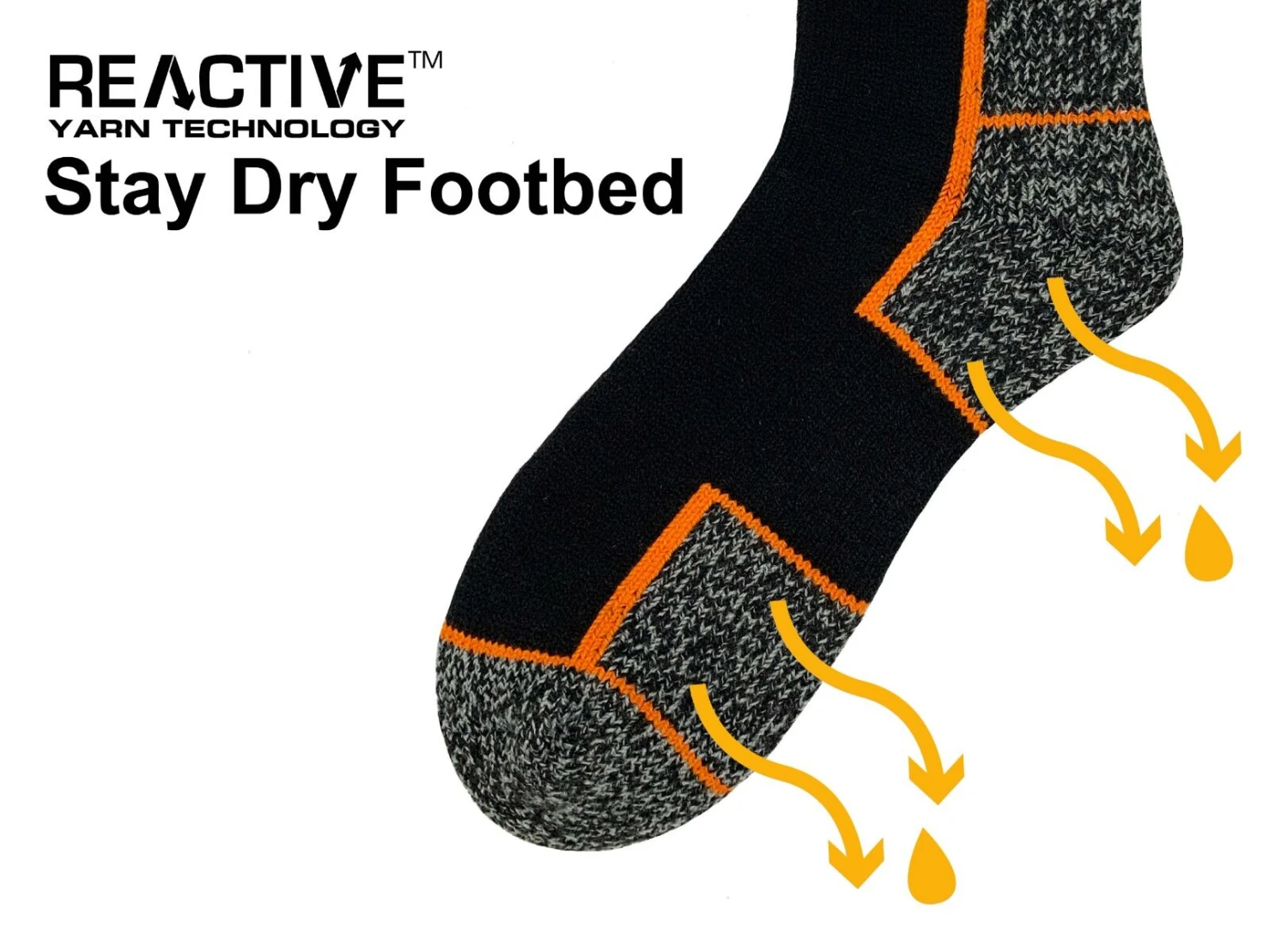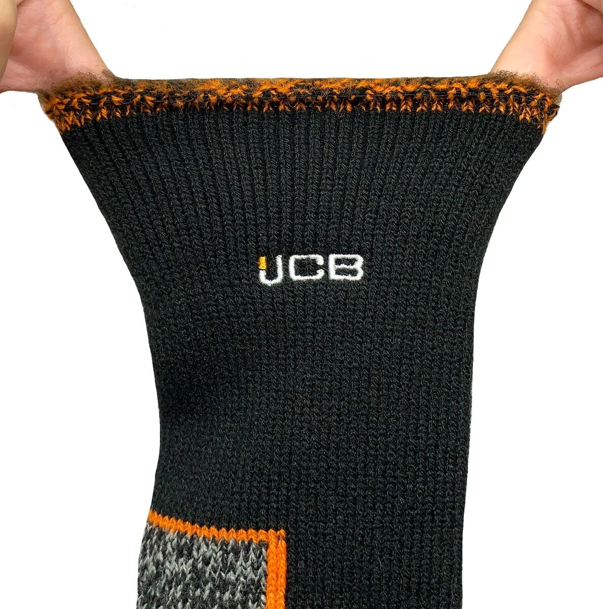 These Cleversocks JCB Midweight Thermasocks for men have been created to keep your feet warm during those colder winter months. These amazing JCB thermal work boot socks with comfort terry cushioning footbed come in black with orange highlight and have an embroidered logo.