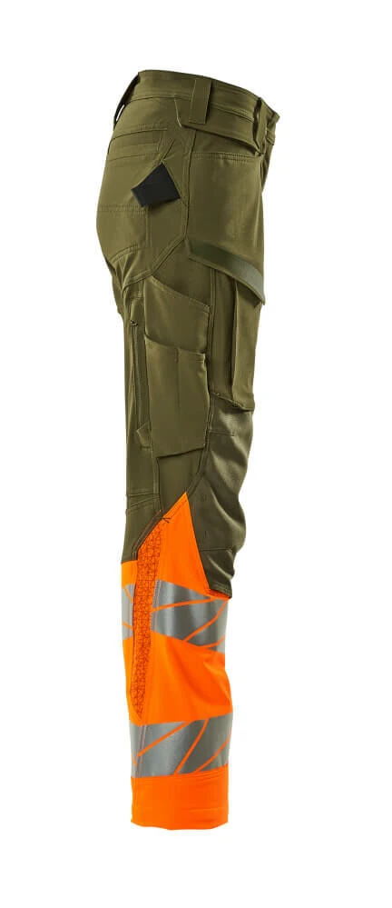 – Thigh pocket with lined telephone pocket, hidden press stud fastening and integrated ID card holder