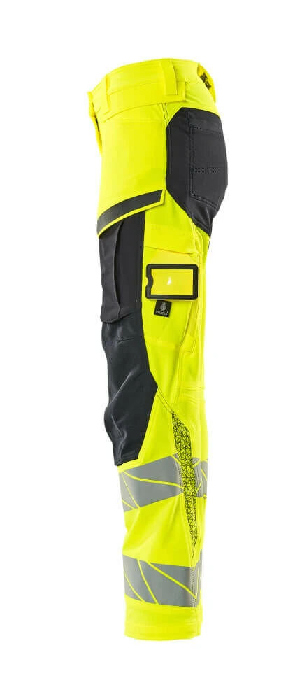 – Thigh pocket with lined telephone pocket, hidden press stud fastening and integrated ID card holder