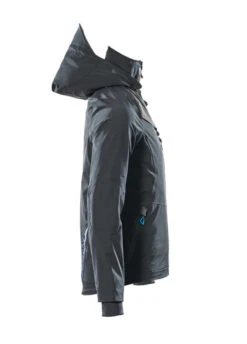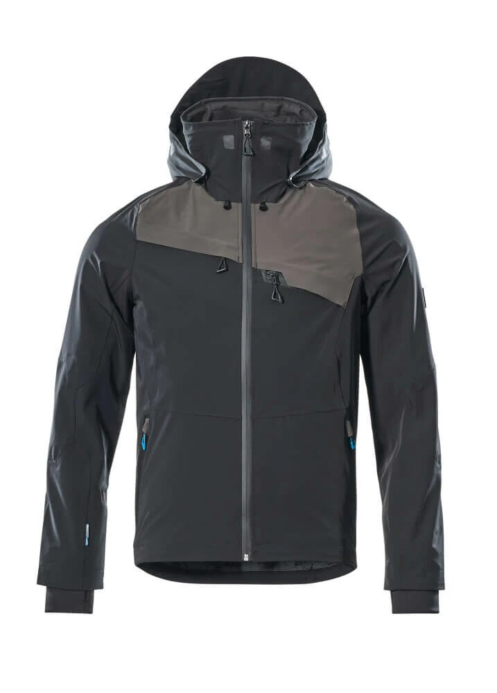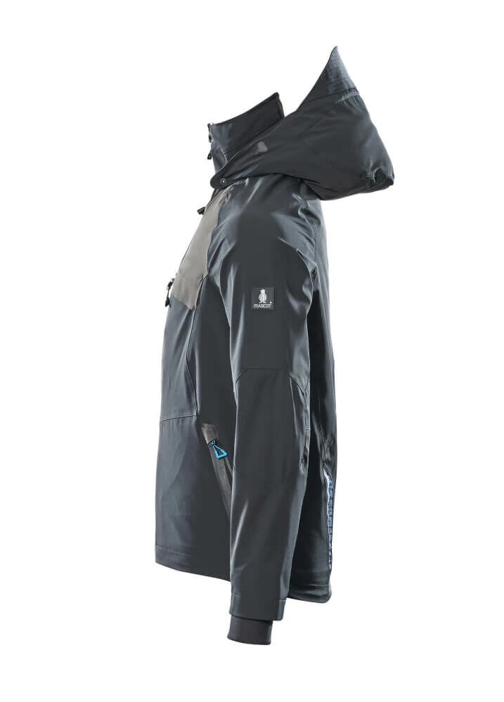 Two-toned. Ultimate stretch fabric that is lightweight and highly durable. Breathable, wind and waterproof. Taped seams. Fastening with waterproof zip and internal storm flap. Detachable lined hood with adjustable drawstring. High collar with adjustable drawstring. Inner pocket with zip. Chest pockets with zip. Ergonomically shaped sleeves allow for high freedom of movement. Front pockets with zip. Extended back. Adjustable elastic drawstring at waist. Rib (hidden in storm flap) at cuffs. Holes for your thumbs at cuffs. Reflectors.
