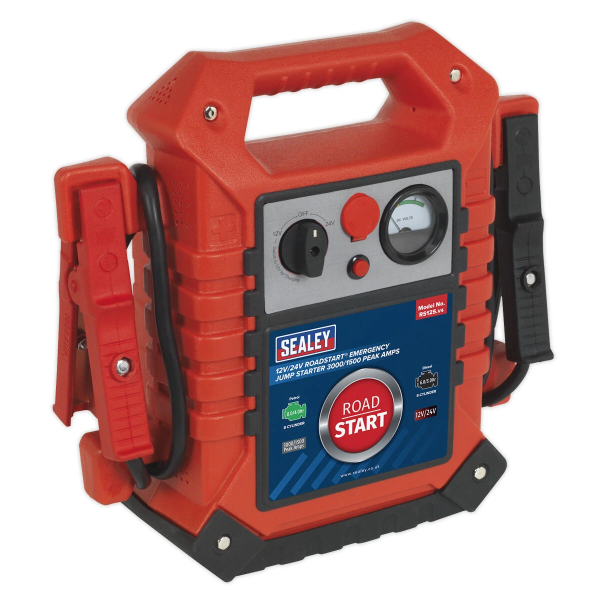 – Suitable for starting vehicles at 12V with 8 cylinder petrol engines up to 8L and 6 cylinder diesel engines up to 6L. 24V with 8 cylinder petrol engines up to 4.0L and 6 cylinder diesel engines up to 3L.