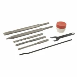 – Includes 6, 8 and 10mm SDS Plus masonry drill bits, flat chisel, point chisel, depth stop, pin spanner, dust guard and pot of grease