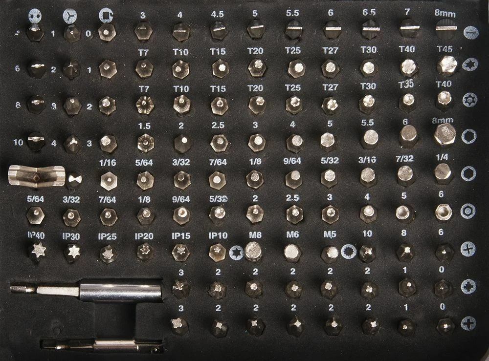 – Supplied in aluminium carry case complete with 102pce screwdriver bit set.