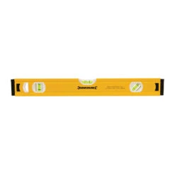 The Silverline powder-coated extruded aluminium spirit level with a milled v-groove bottom face and three UV resistant vials.