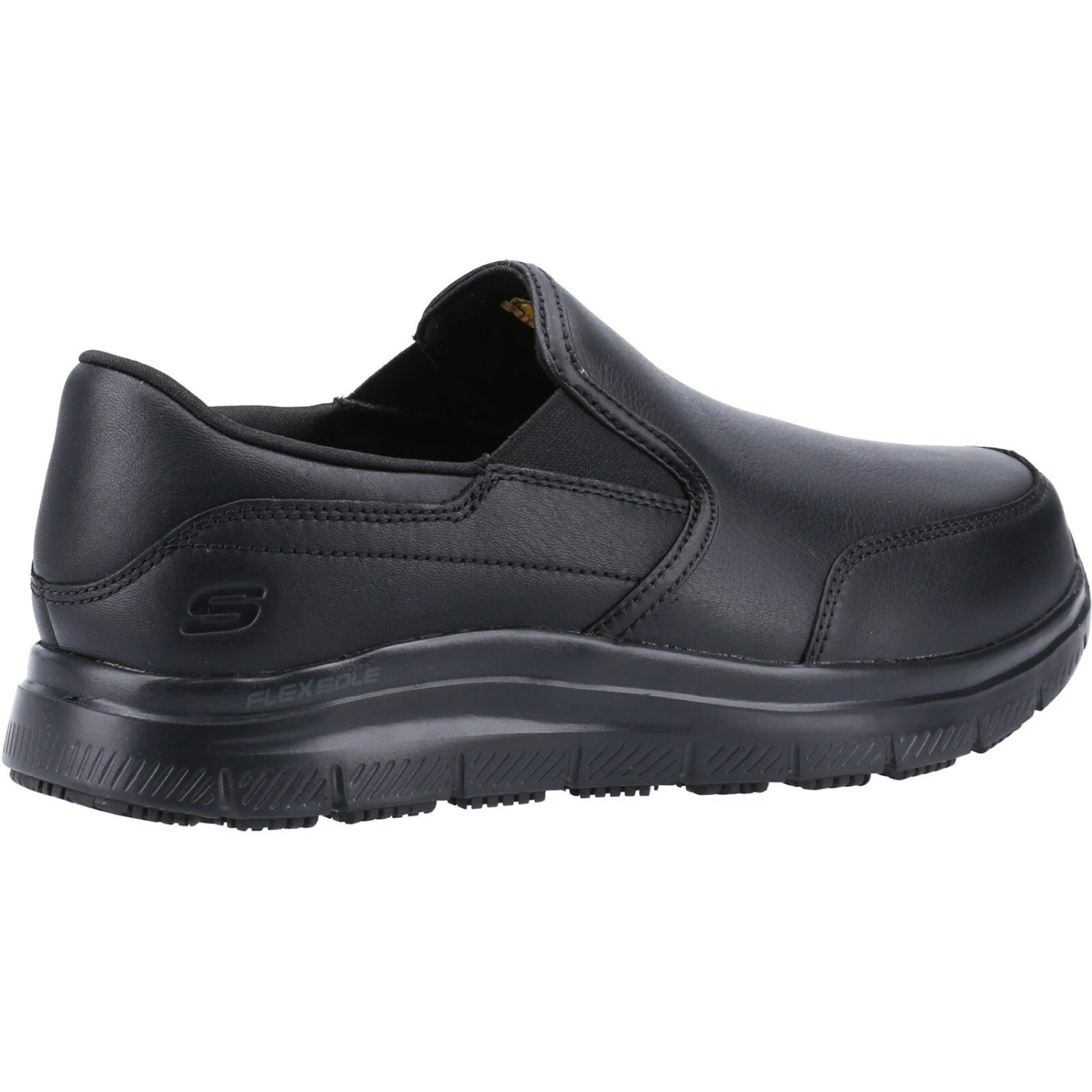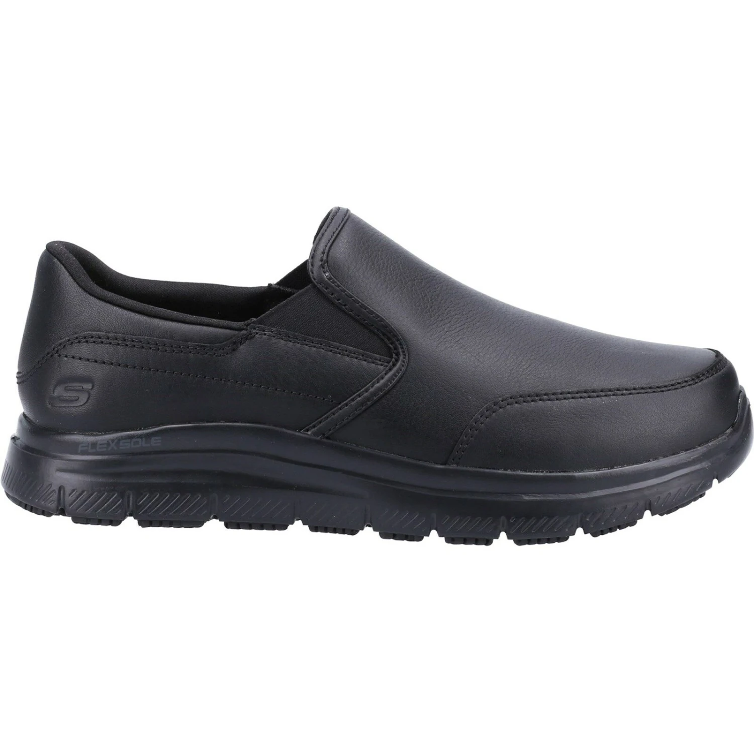 Smooth versatile style, surefooted safety, and comfort combines in the Bronwood shoe. Smooth leather and synthetic upper in a slip on casual comfort slip resistant work loafer moc with stitching and overlay accents.