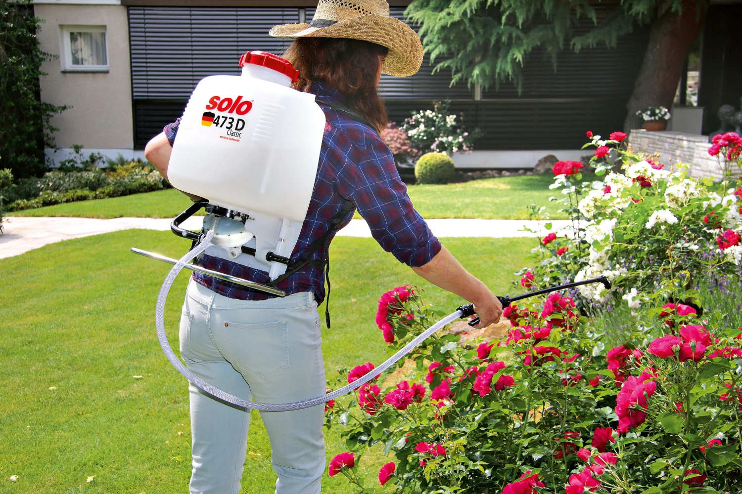 The Solo 473-D backpack sprayer with proven diaphragm pump and 10 l tank size, you will be reliably equipped for applying spray liquid or insecticide in your garden. A low number of wearing parts and sturdy technology ensure a long service life and minimum maintenance. Large filling apertures for convenient filling of the tank and smooth-running pumps make spraying pleasant work.